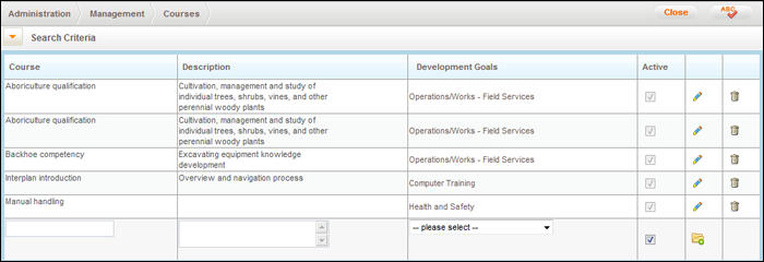 STEP 1: Go to Administration > Individual Planning Admin > Management > Courses.