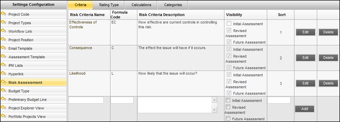 STEP 3: Click 'Add' to save the details. Similarly, use 'Edit' to make any modifications or 'Delete' to remove the risk criteria details from the system.