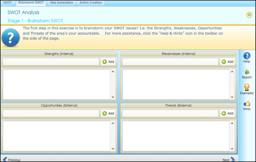 STEP 2: Click 'SWOT Analysis' to move to the 'Brainstorm SWOT' tab screen.