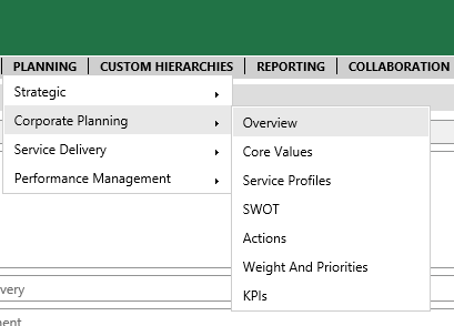 The Corporate Planning area allows you to set up operational level plans for each business unit which can include the following: