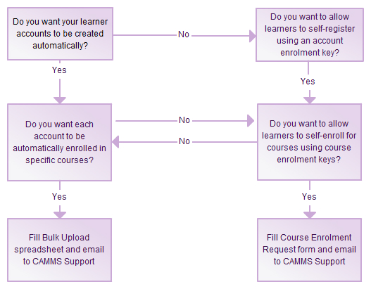 CAMMS creates learner accounts and allow learners to self-enrol to courses: