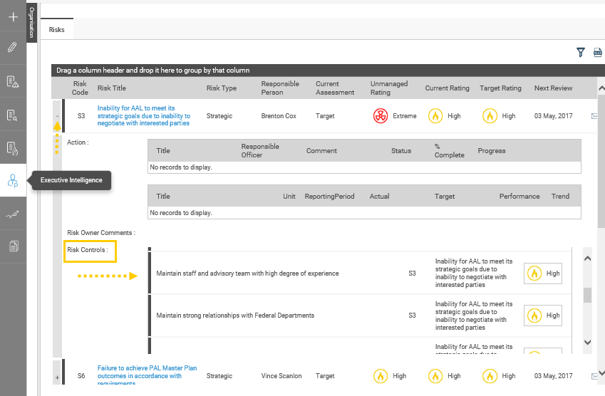 ·         The Control title displays in the risk action grid: this allows the user to enter control risk actions straight from the risk action creation. Risk Actions added from here are automatically added in the control detail risk action grid and vice versa.