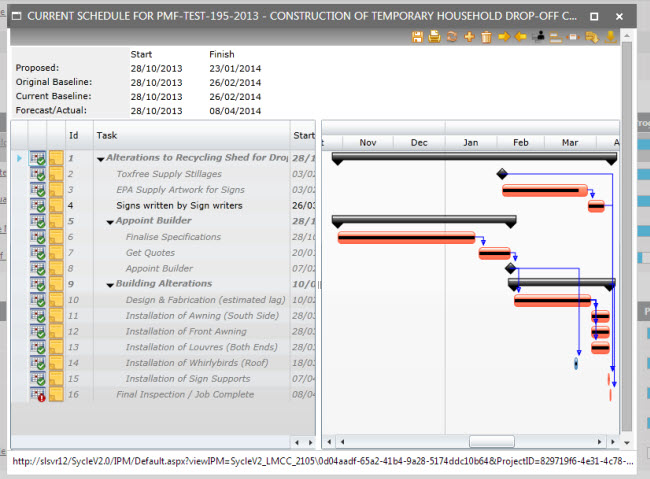STEP: 1: Click on the "view Schedule"icon to open the pop up window that will display the current Gantt chart of the project. Tasks you are responsible for will be highlighted.