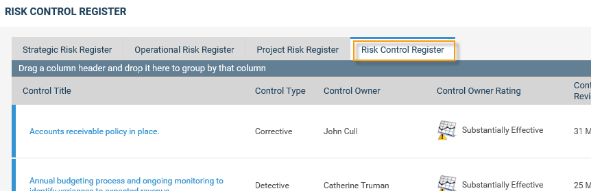 The Control Register are those controls linked to all risks in your database (either linked with Strategic Risks, Operational Risks or Project Risks).