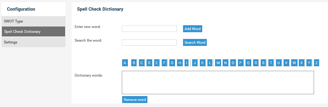To add a new word, type in the word in the space given to enter new word and click the ‘Add Word’ button. If the word already exists you will be notified.