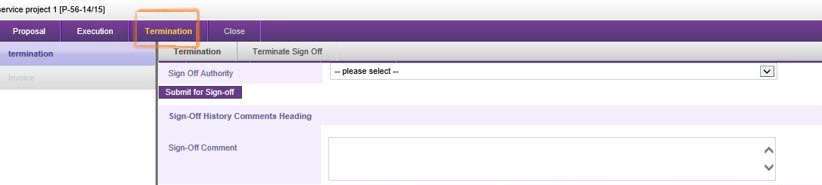 Terminate sign off object will be included in the project position permission configuration area for the administrator to configure which position can submit (can edit) for approval and who has the permission to authorise (can finish/sign off). All the permissions applied in other standard sign off's should be applied here as well.