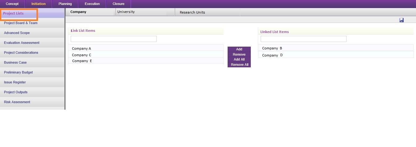 This object will be able to include in multiple stages of the project workflow allowing the user to select items as the project progress.