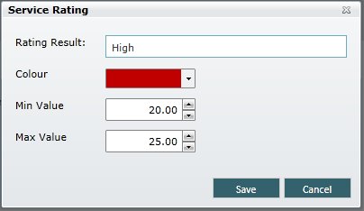 Service Priority area enables you to setup the service priority matrix, Here you can define the two dimensions of the service priority matrix, define the colours and ratings used to generate the chart.