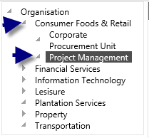 STEP 2: To view the linked staff members, click the relevant level from the organisational hierarchy. Drill down the tree to Business Unit level by clicking on the expand