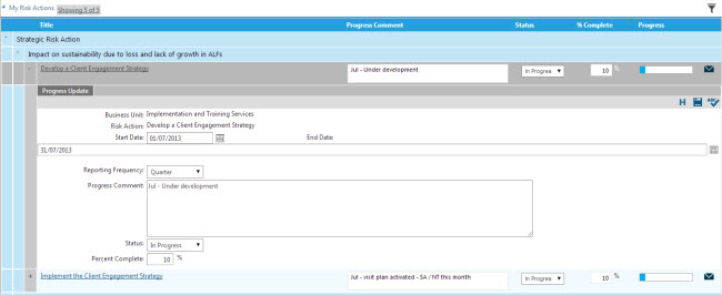 STEP 2 : The following screen will be displayed for you to update the progress of the risk mitigation action.