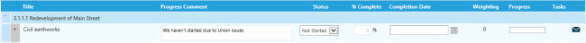Click on the Task Grid icon to open the pop up window that will display any sub-tasks relating to that task. Update the progress comments, status and percentage completed for the tasks and click on 'Save All' icon. Once the changes have been saved, you can close the task pop up window.